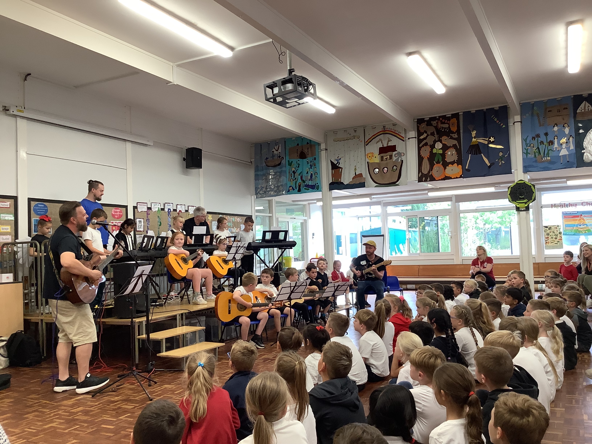 Each week in assembly, the children listen to a wide range of music from different eras and composers. We aim to give the children opportunities to develop appraisal and acquire musical skills through this and also in Music lessons. We try to give the children the experience of live music both in school and outside of school to apply these skills.