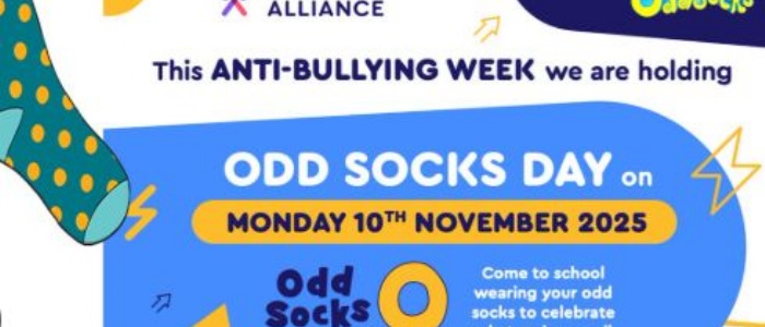 To celebrate 'anti-bullying week' wear ODD SOCKS on Monday 10th November. Show everyone, it's OK to be different.